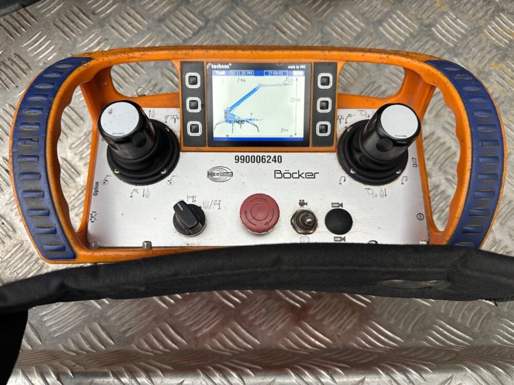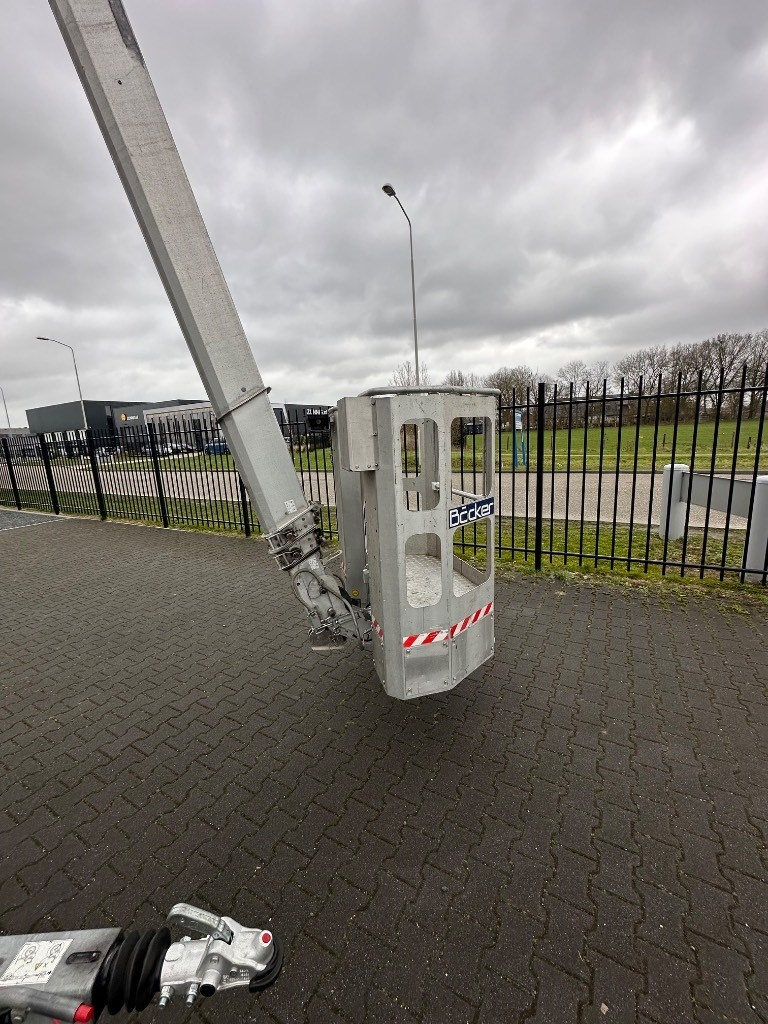 Böcker AHK 36/2400 Trailer Crane with basket construction year 2019 with 1.758 hours from the first owner. Machine is in a nice condition and has among other things: a Honda petrol engine, automatic leveling, wheel drive operable from the remote, hydraulic support legs, hydraulic jib and radio remote control. Changes and typographical errors reserved.